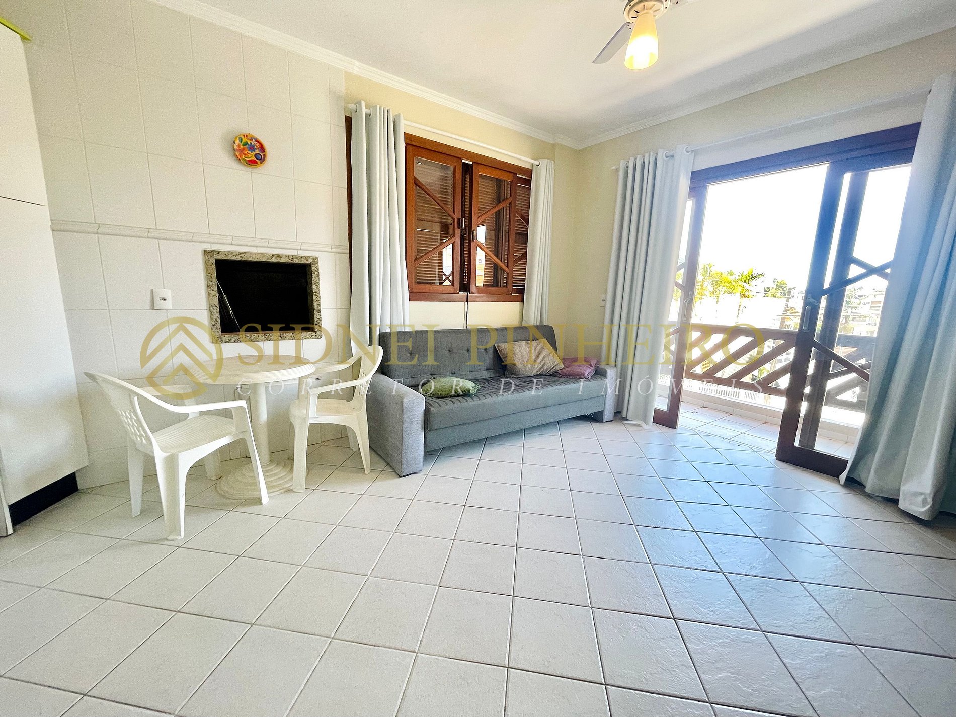 - Sala de jantar e cozinha integrada com ventilador de teto e mesa para 04 pessoas;