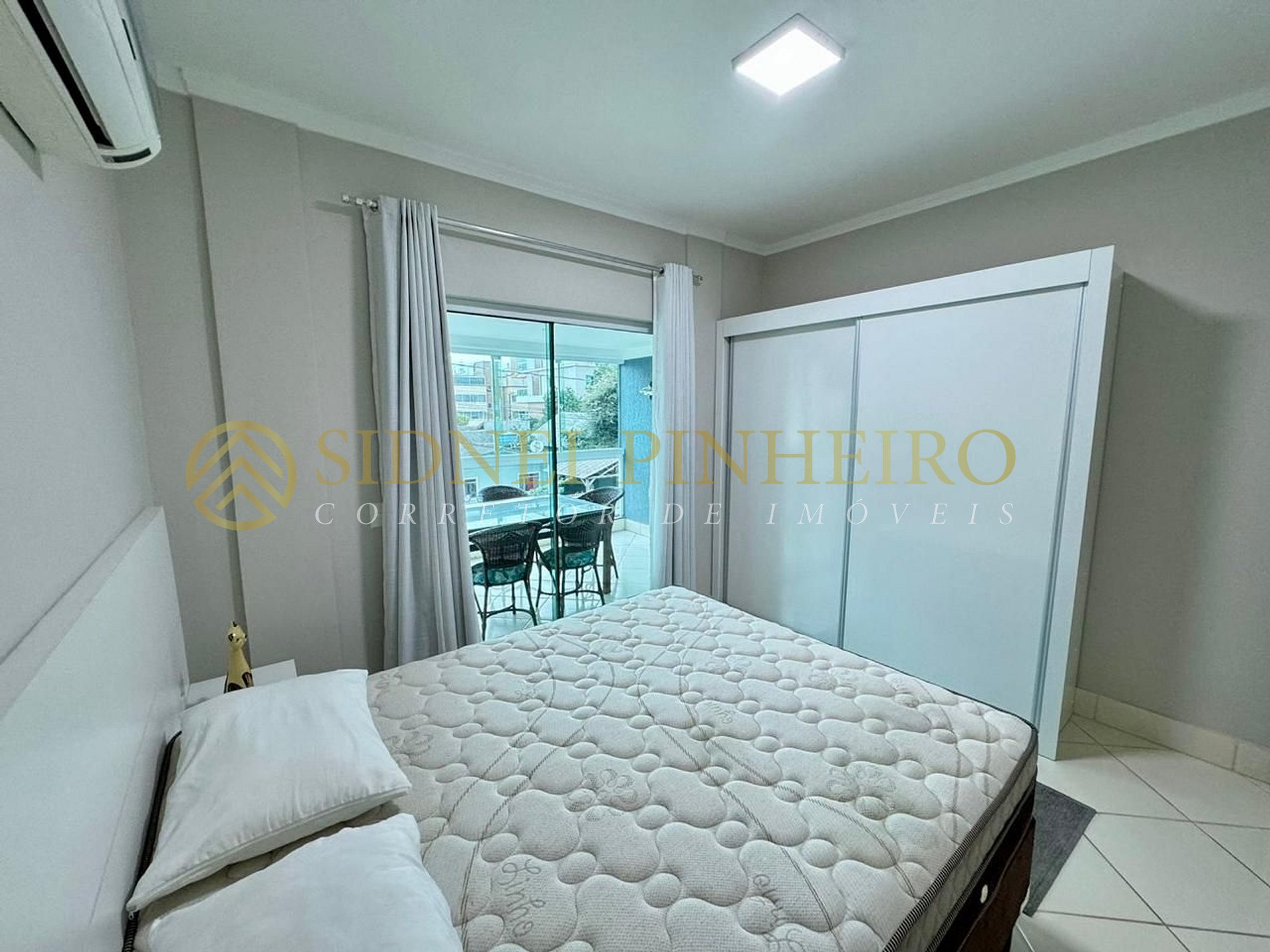 * 01 dormitório com cama de casal, 01 cama box de solteiro + 01 colchão de solteiro e ar-condicionado Split;