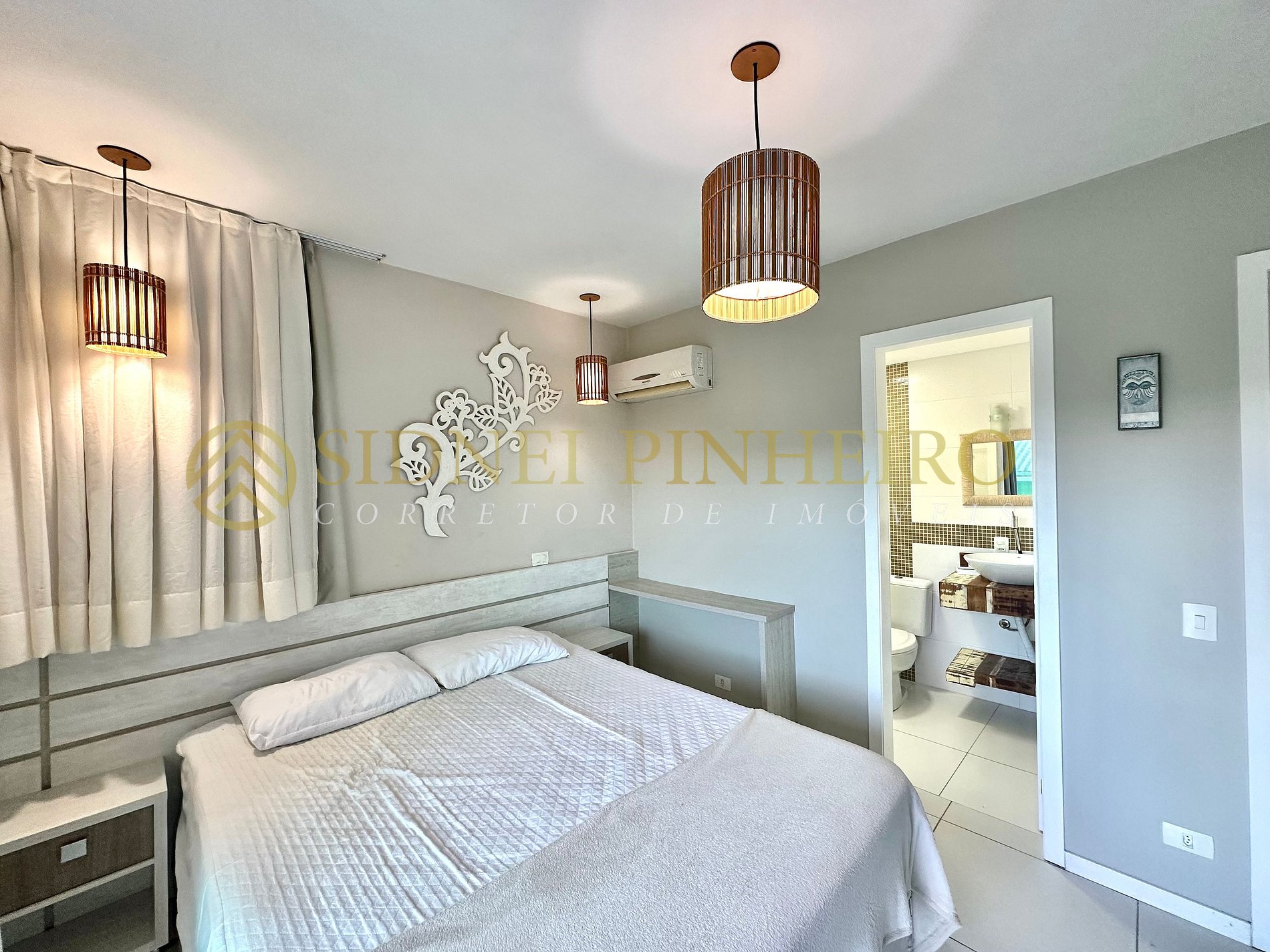 - 01 suíte com cama de casal e ar condicionado Split com sacada;