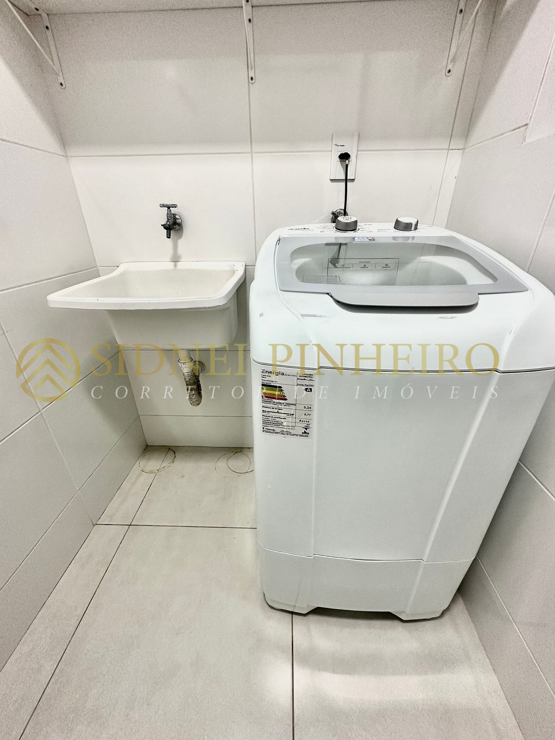 - Área de serviço com máquina de lavar roupas e tanque de mão;