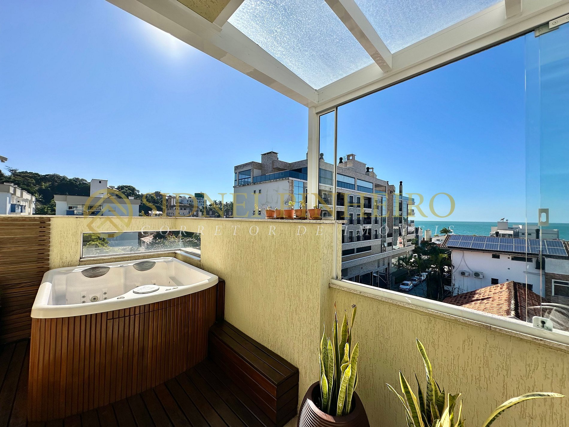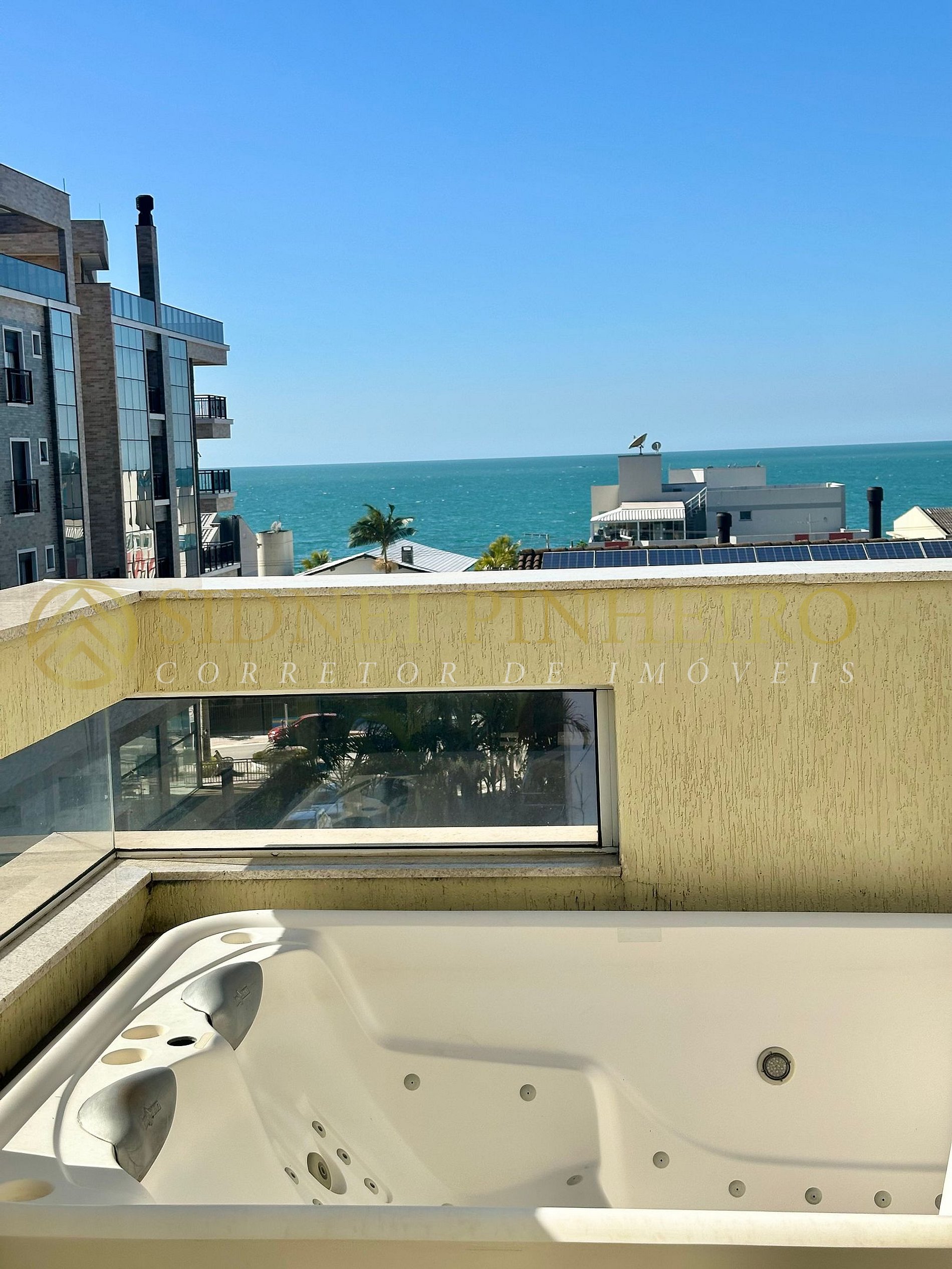 - Área gourmet com churrasqueira, jacuzzi privativa e vista para o mar;