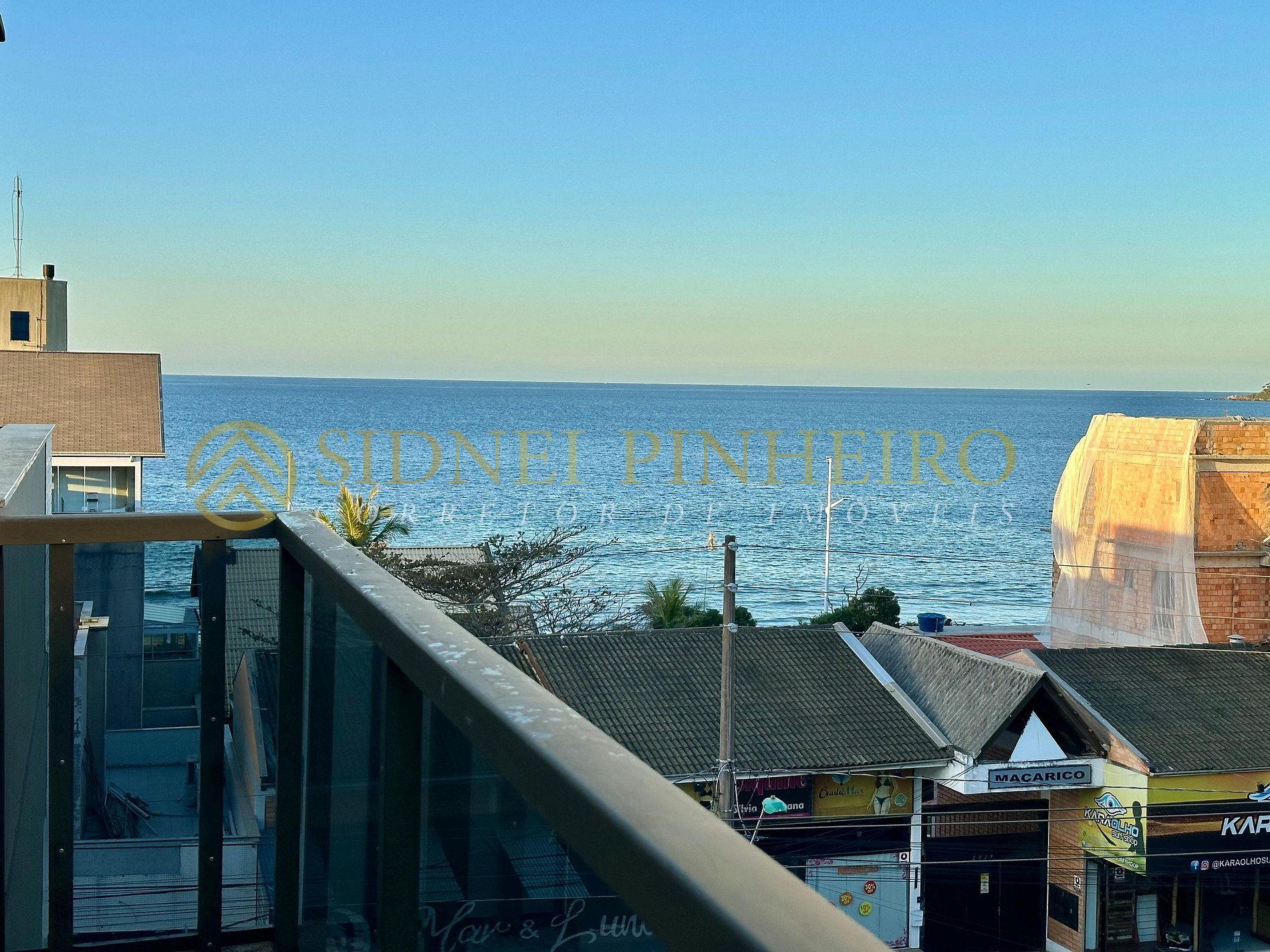 * Sacada com churrasqueira e vista para o mar;