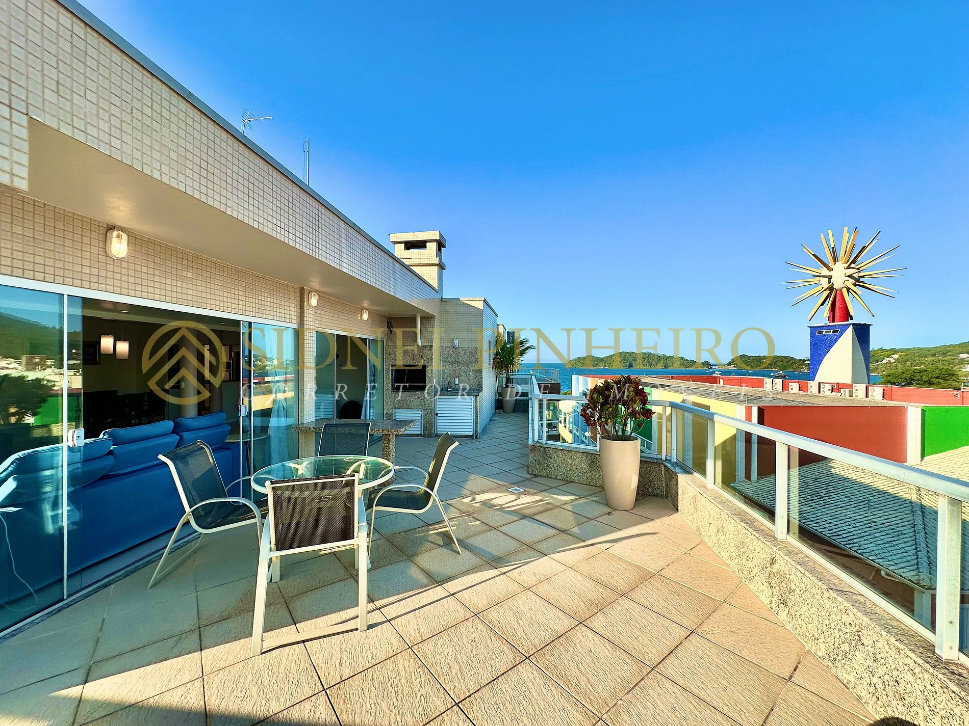 - Ampla sacada com churrasqueira, vista para o mar e para a avenida principal;