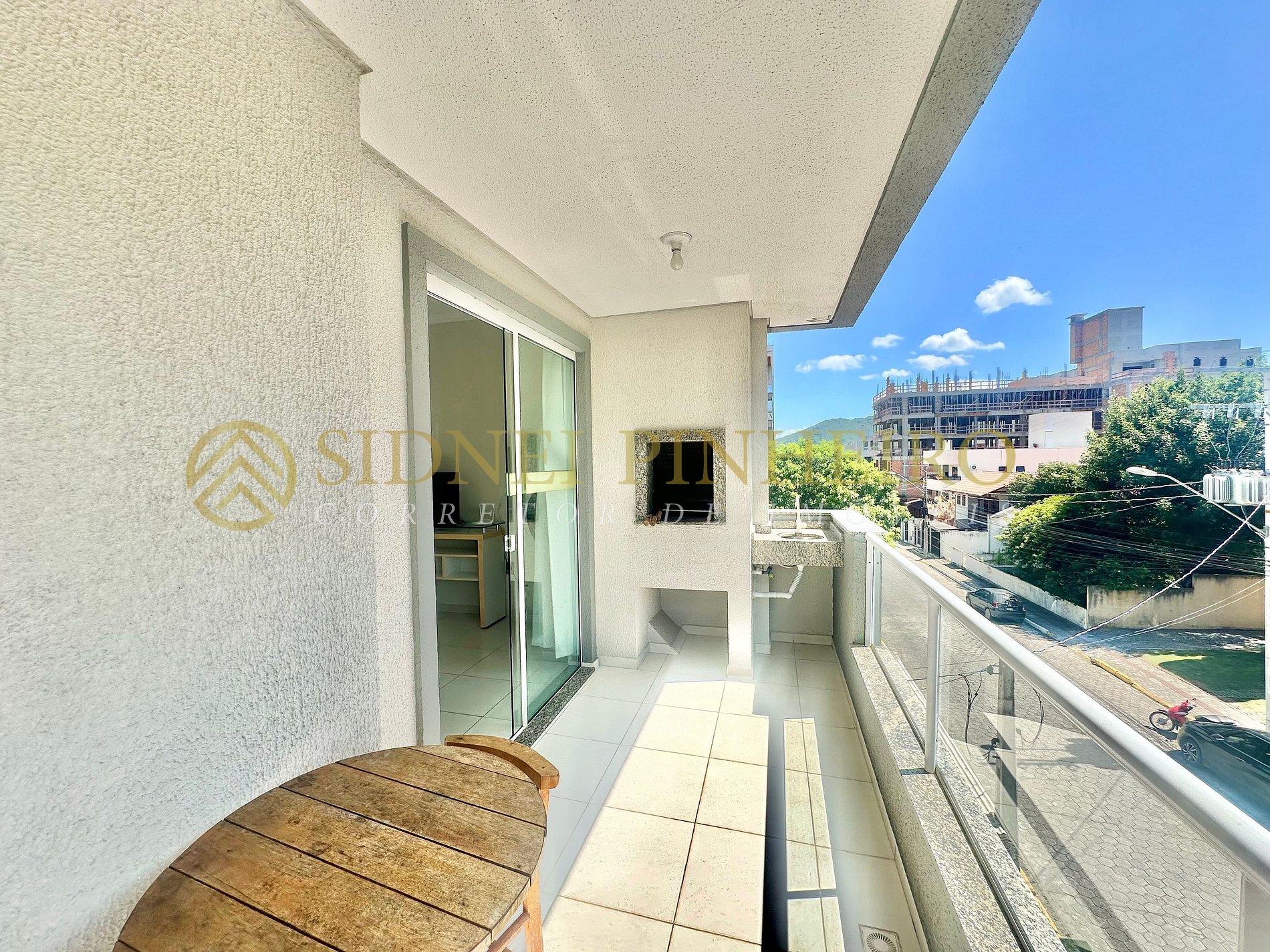 Sacada ampla com churrasqueira de frente para a rua.
