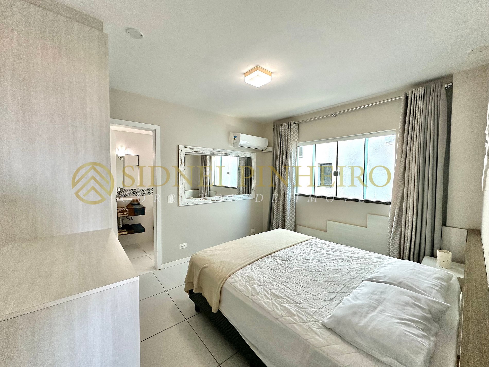- 01 suíte com cama de casal, ar condicionado Split;