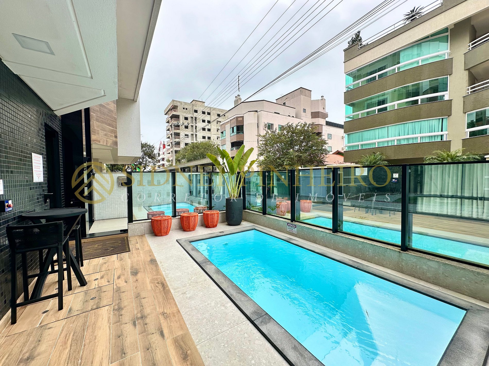 - Sacada com churrasqueira com vista lateral para o mar;