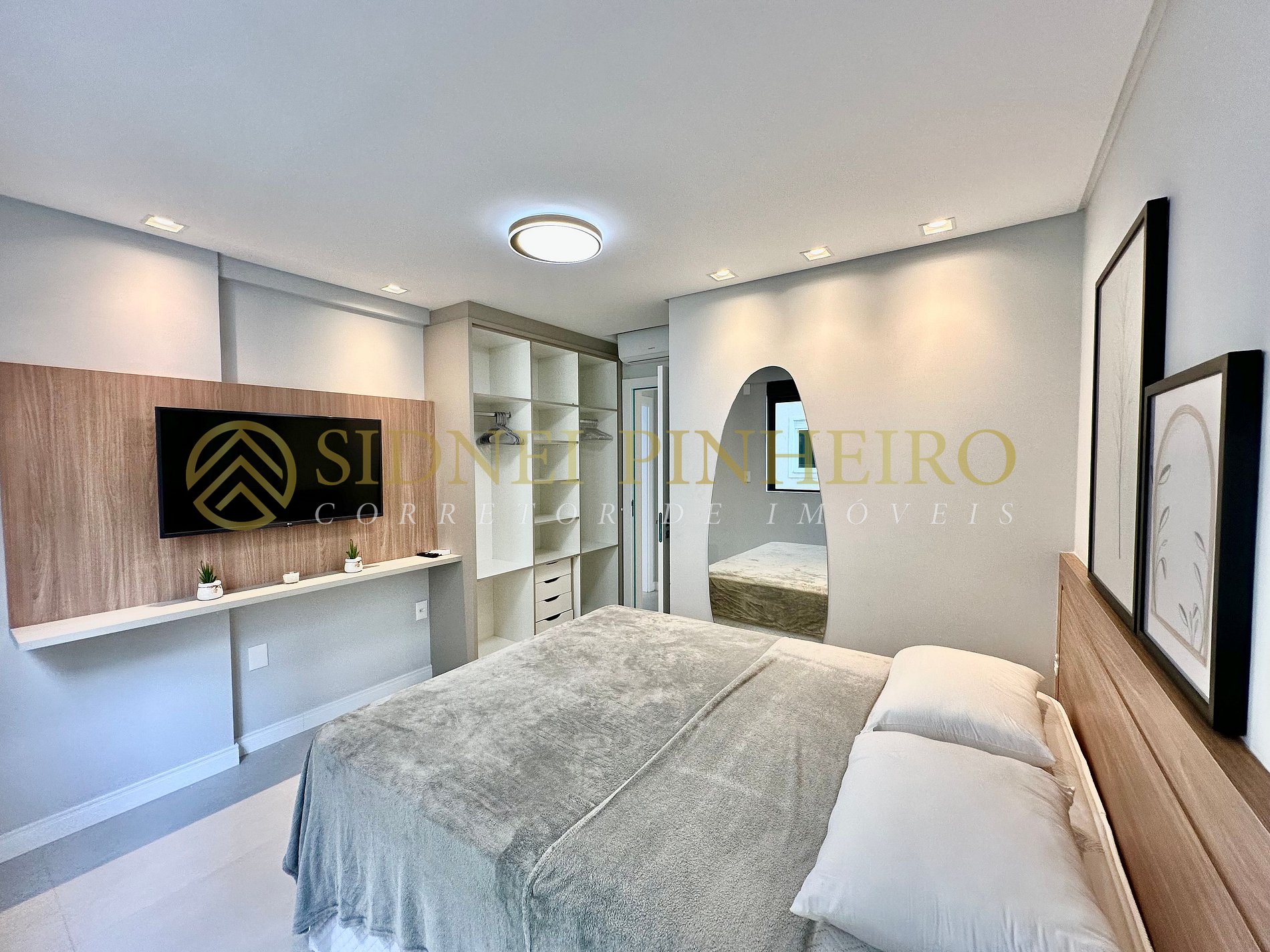- Sala com sofá, Smart TV e ar condicionado;