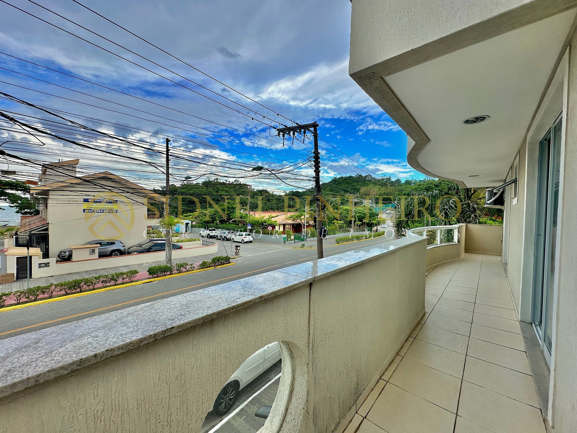 - Sacada com churrasqueira e vista para o mar e também, para avenida;