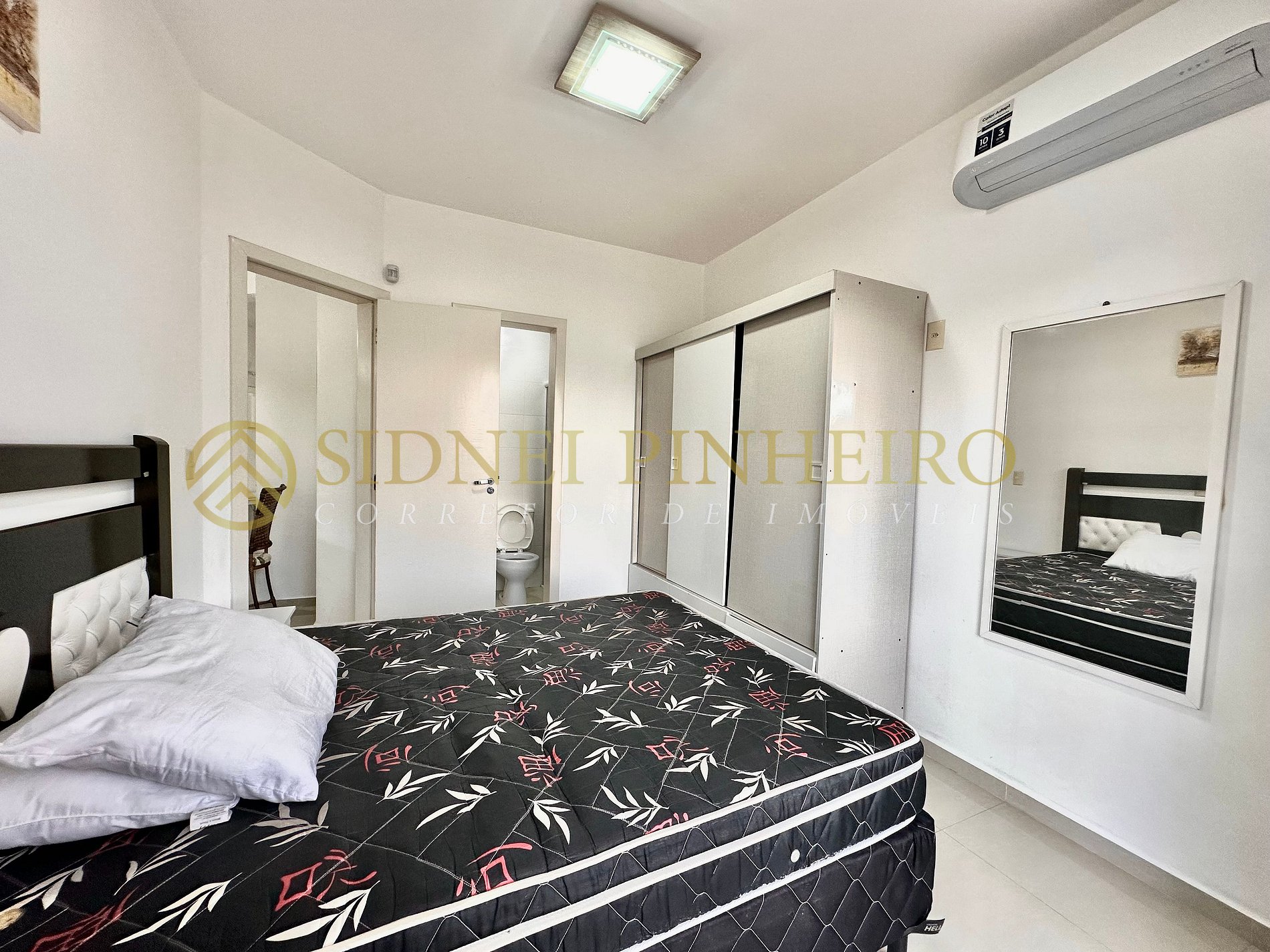 * 01 suíte com uma cama de casal, ar condicionado Split e saída para a sacada;