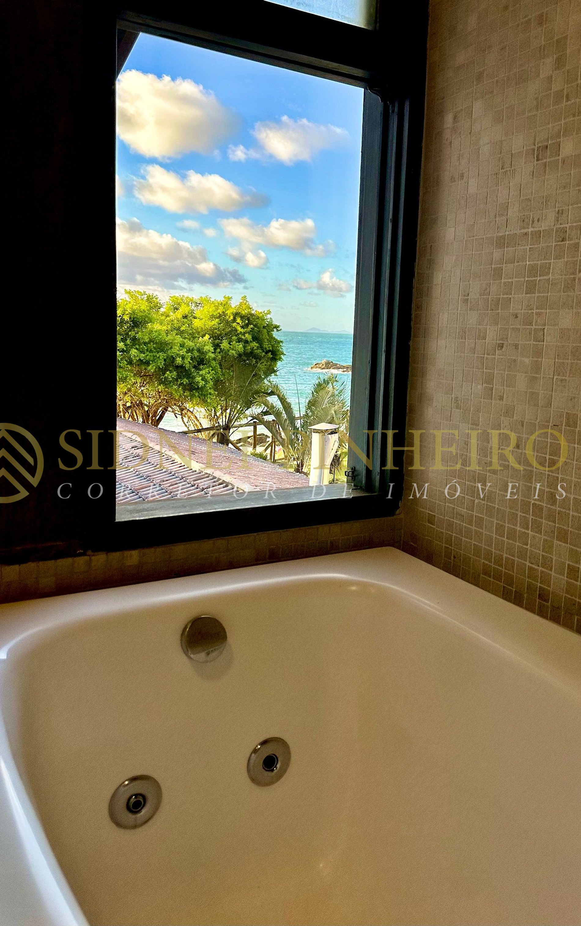 • 01 suíte com cama de casal, ar-condicionado Split, banheiro com banheira de hidromassagem, TV Smart e uma fantástica vista para o mar;
