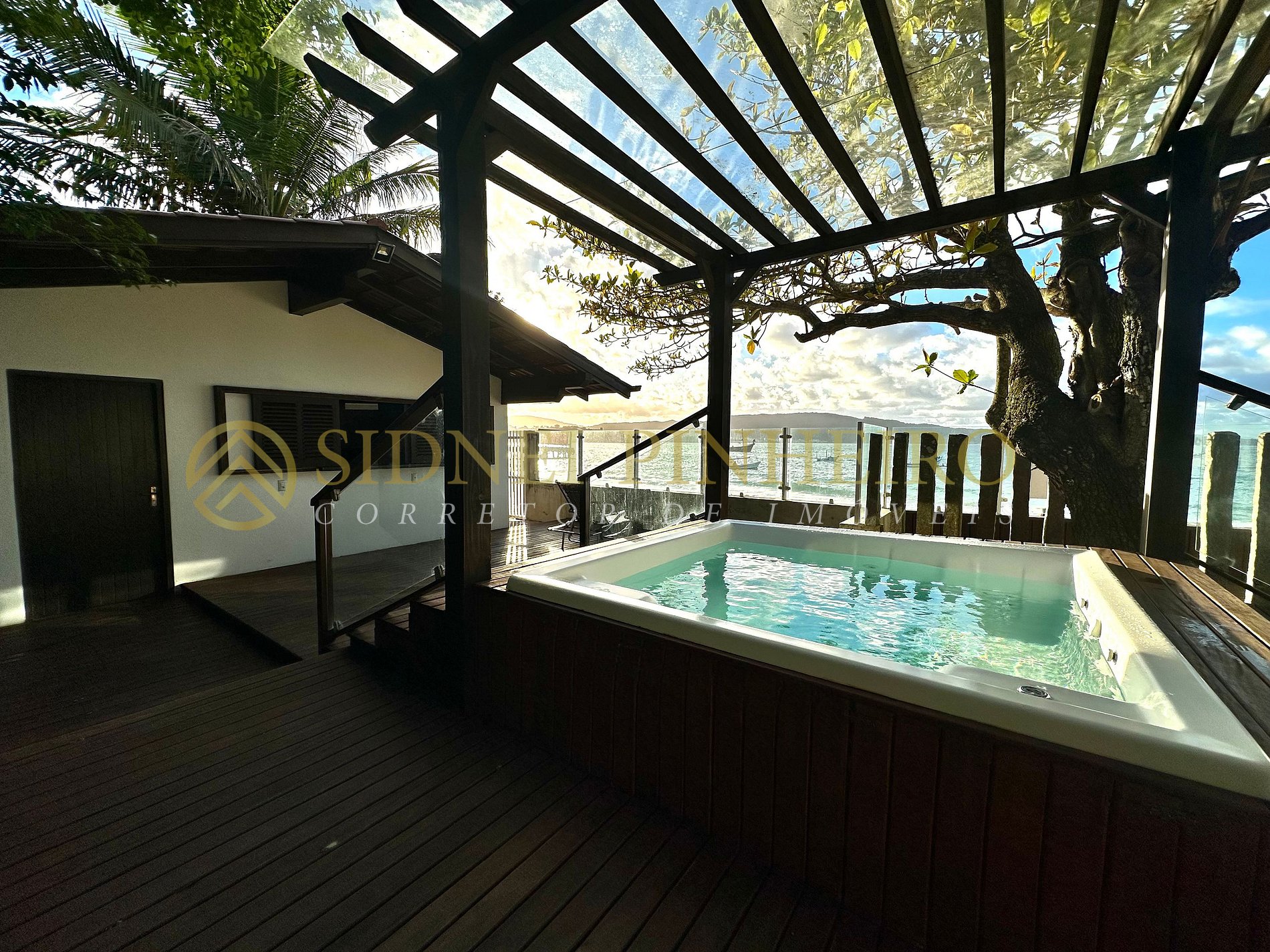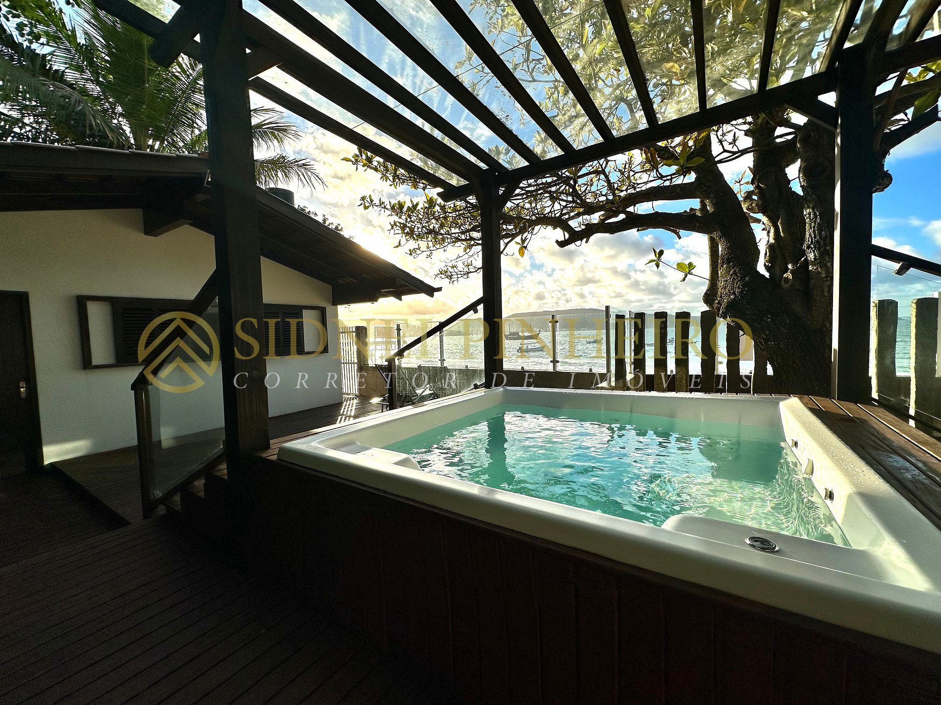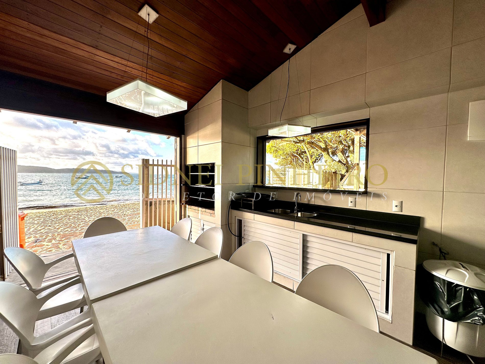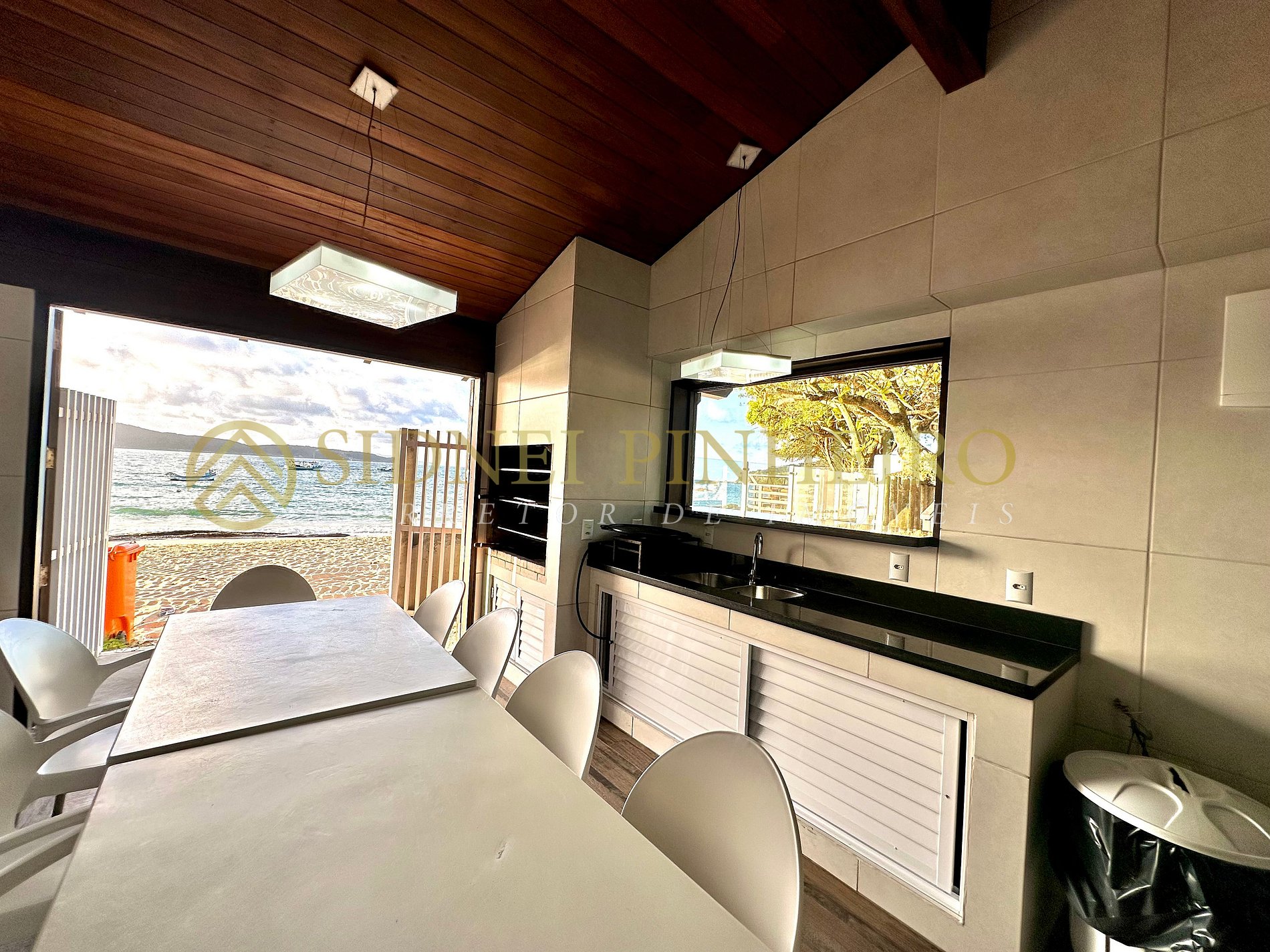 Casa em conceito rústico à beira-mar na praia da Lagoinha em Bombinhas, tem uma área total de 600 m², com acesso exclusivo a praia. A casa é amplas e tem 170 m² de área interna, 4 suítes, sendo uma com hidromassagem e tem todos os ambientes são climatizados.