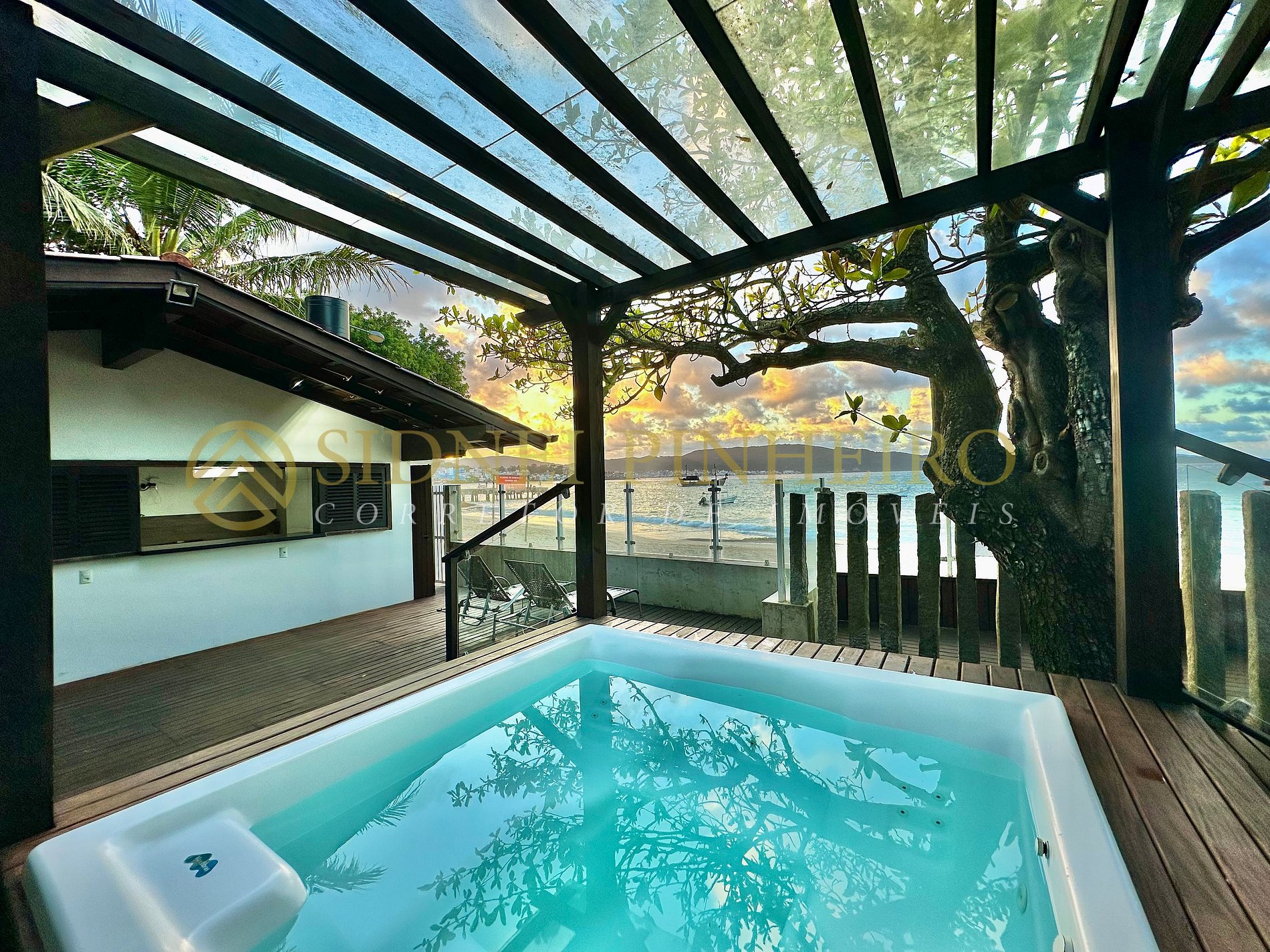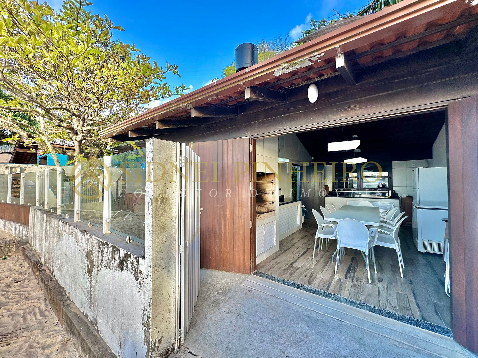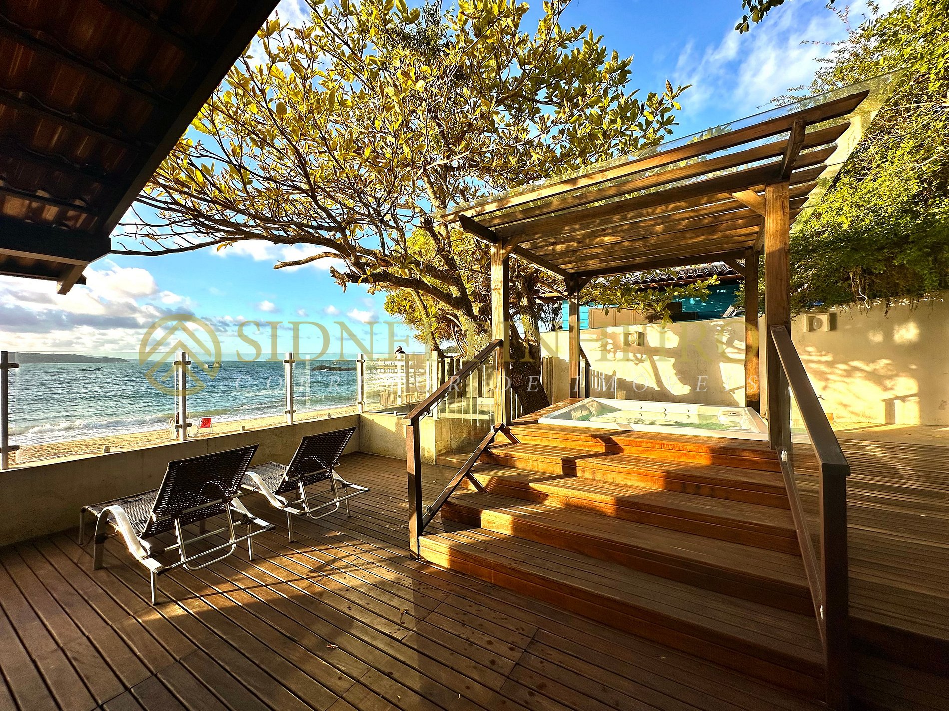 Casa em conceito rústico à beira-mar na praia da Lagoinha em Bombinhas, tem uma área total de 600 m², com acesso exclusivo a praia. A casa é amplas e tem 170 m² de área interna, 4 suítes, sendo uma com hidromassagem e tem todos os ambientes são climatizados.
