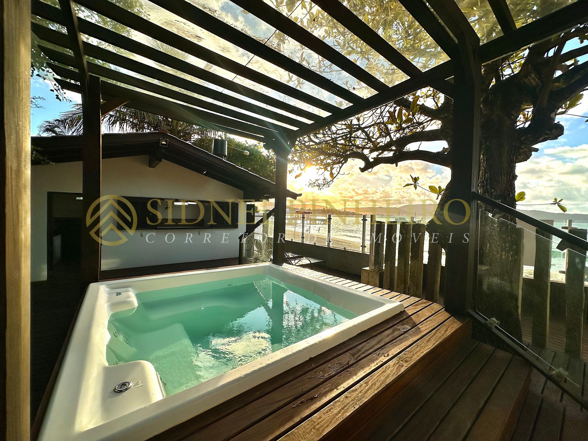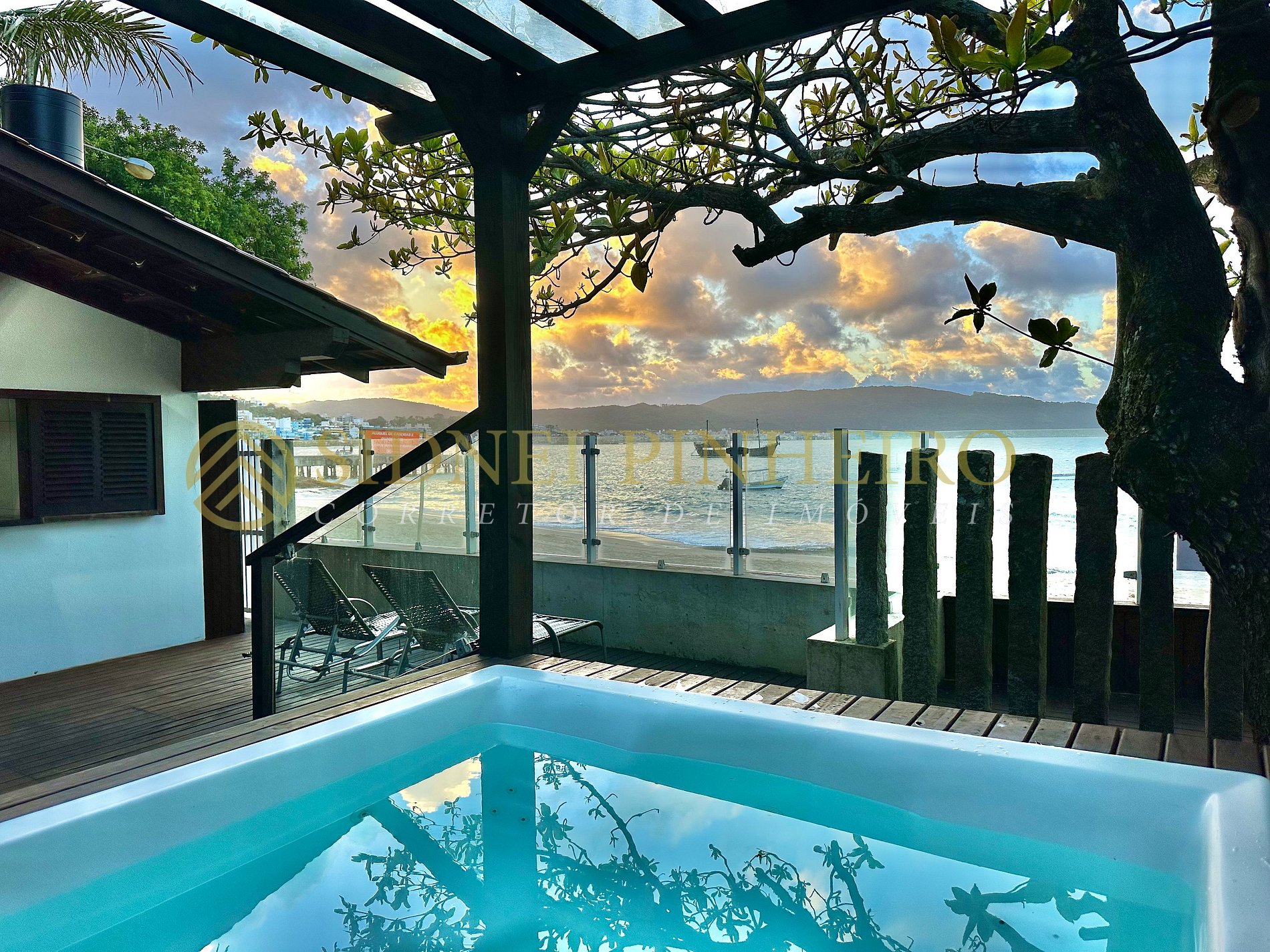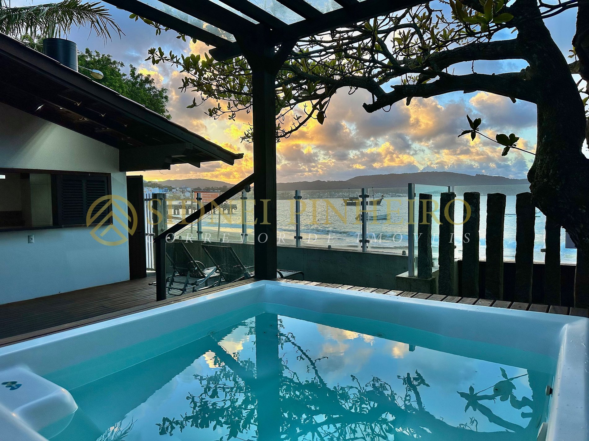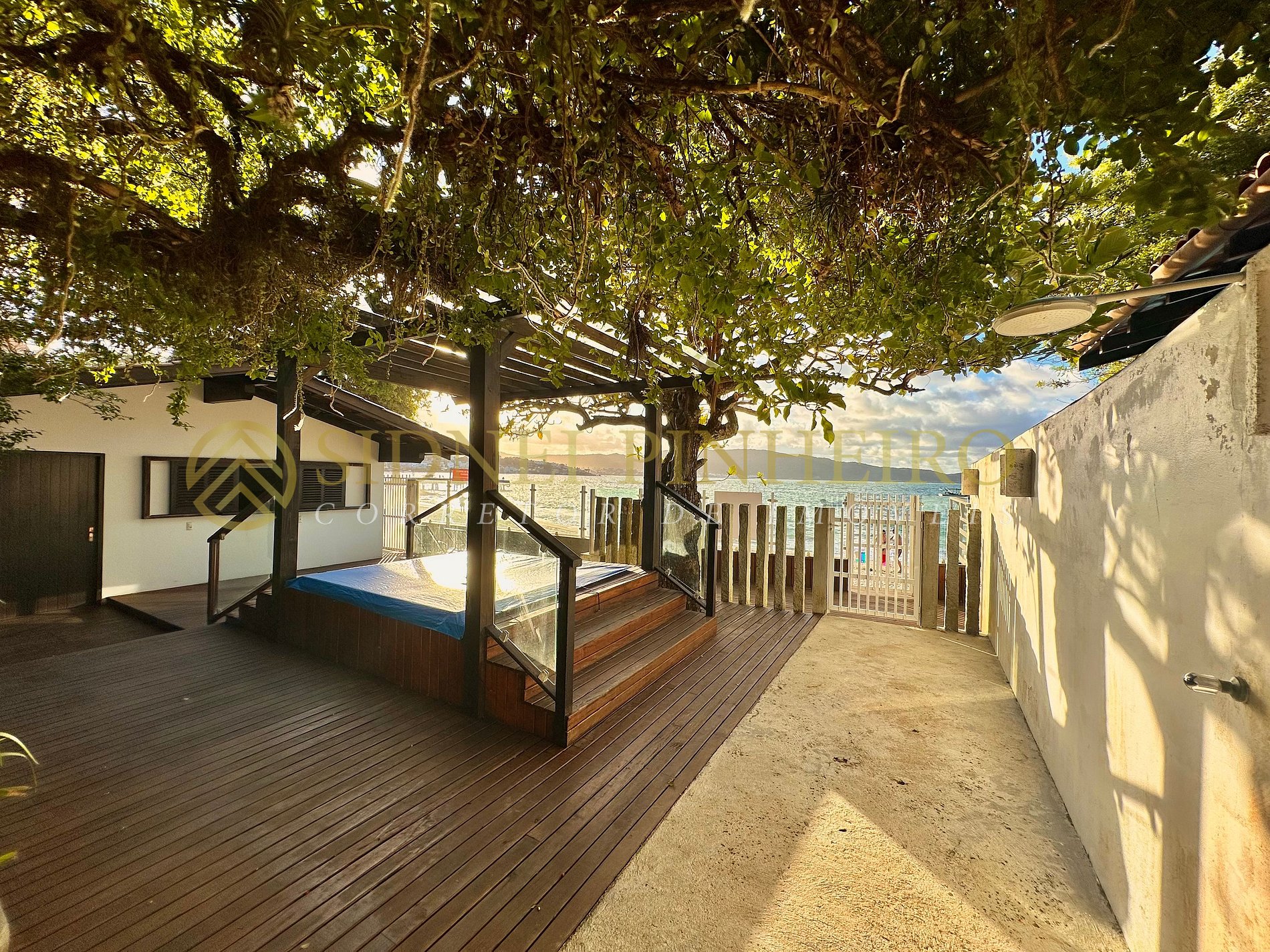 Casa em conceito rústico à beira-mar na praia da Lagoinha em Bombinhas, tem uma área total de 600 m², com acesso exclusivo a praia. A casa é amplas e tem 170 m² de área interna, 4 suítes, sendo uma com hidromassagem e tem todos os ambientes são climatizados.