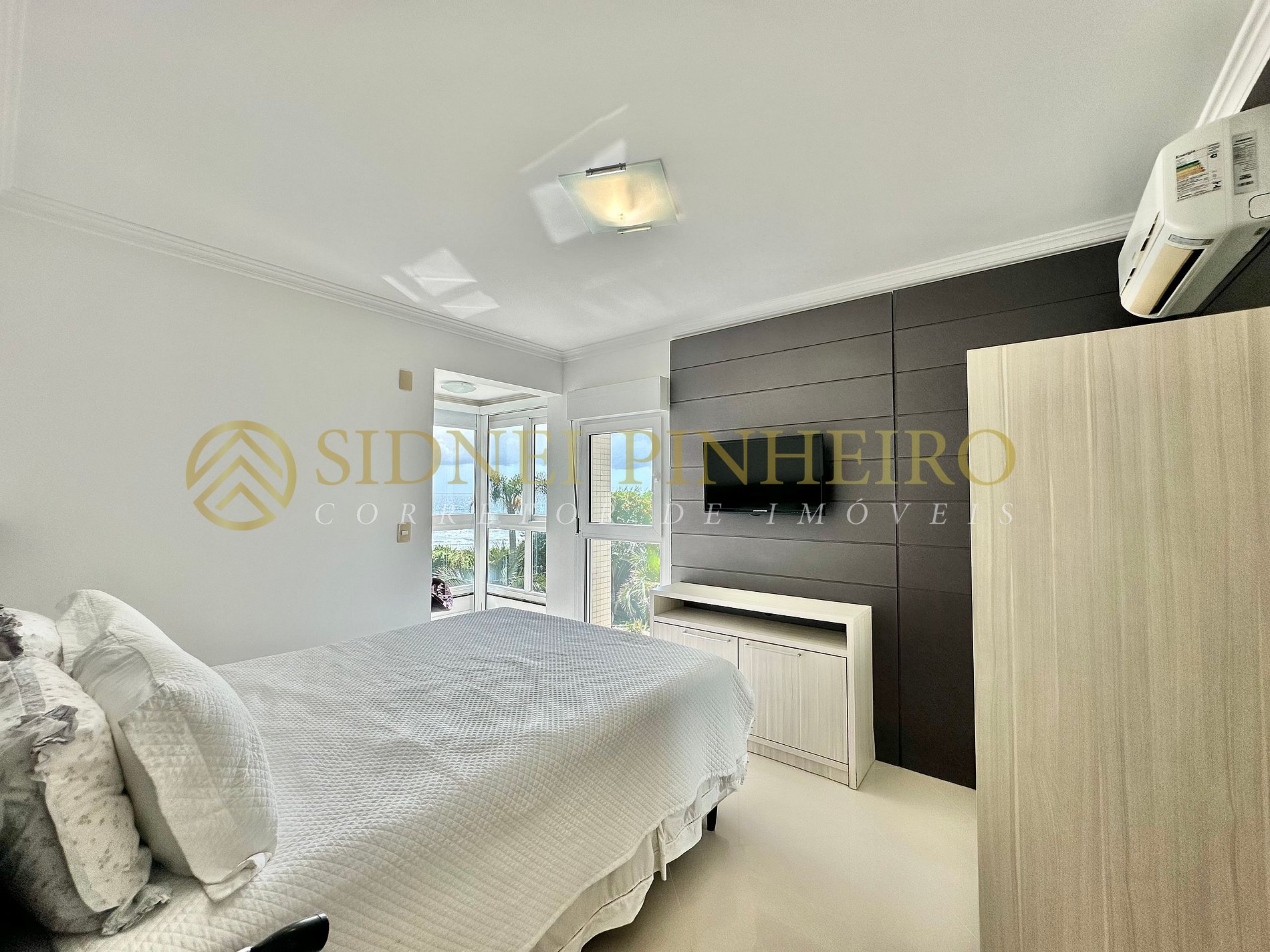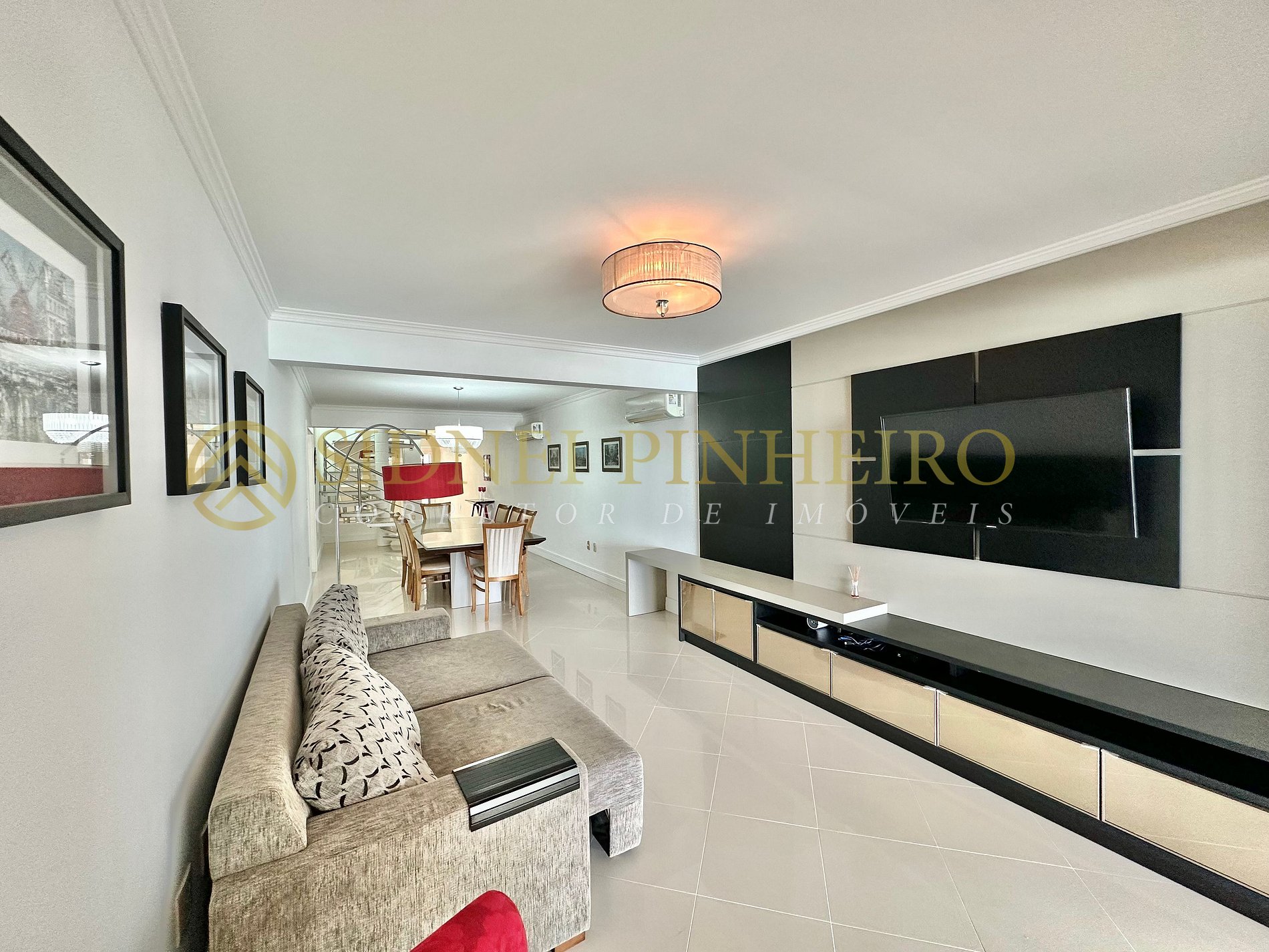 - Ampla sala de estar com sofá e TV e ar condicionado Split;