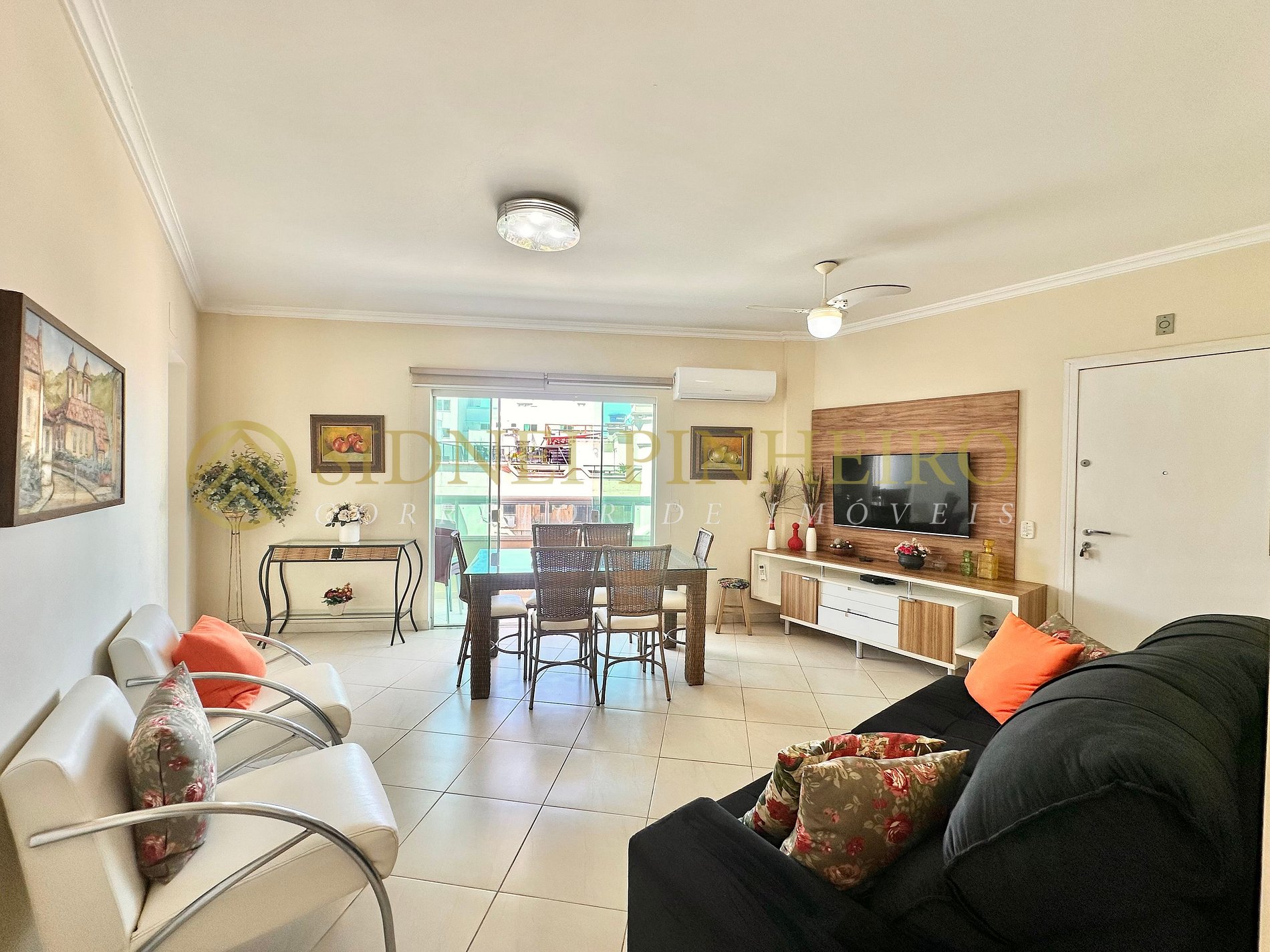 - Sala com sofá-cama, ar condicionado, televisão e saída para a sacada;