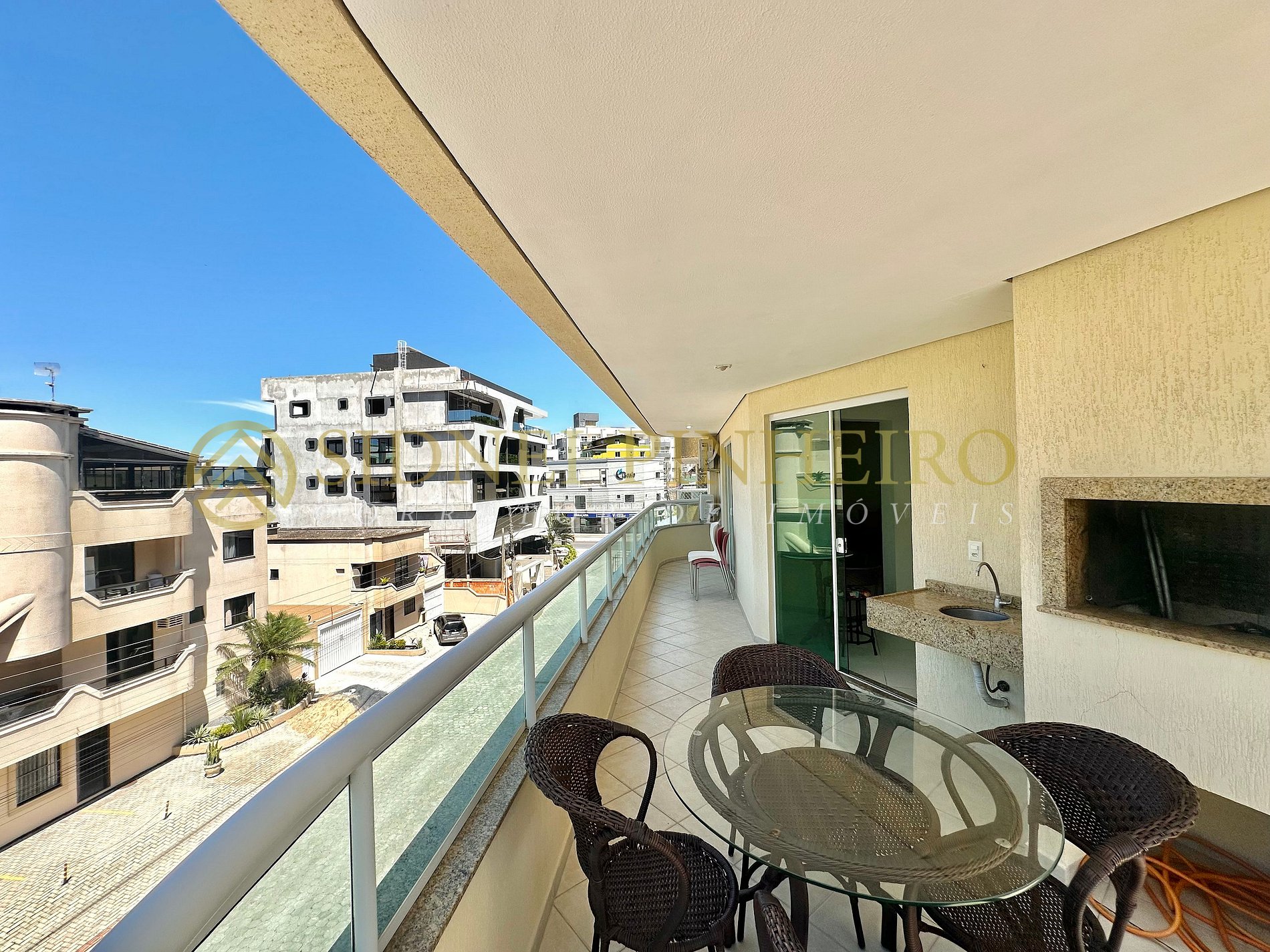 - Sacada com churrasqueira e vista para a rua;