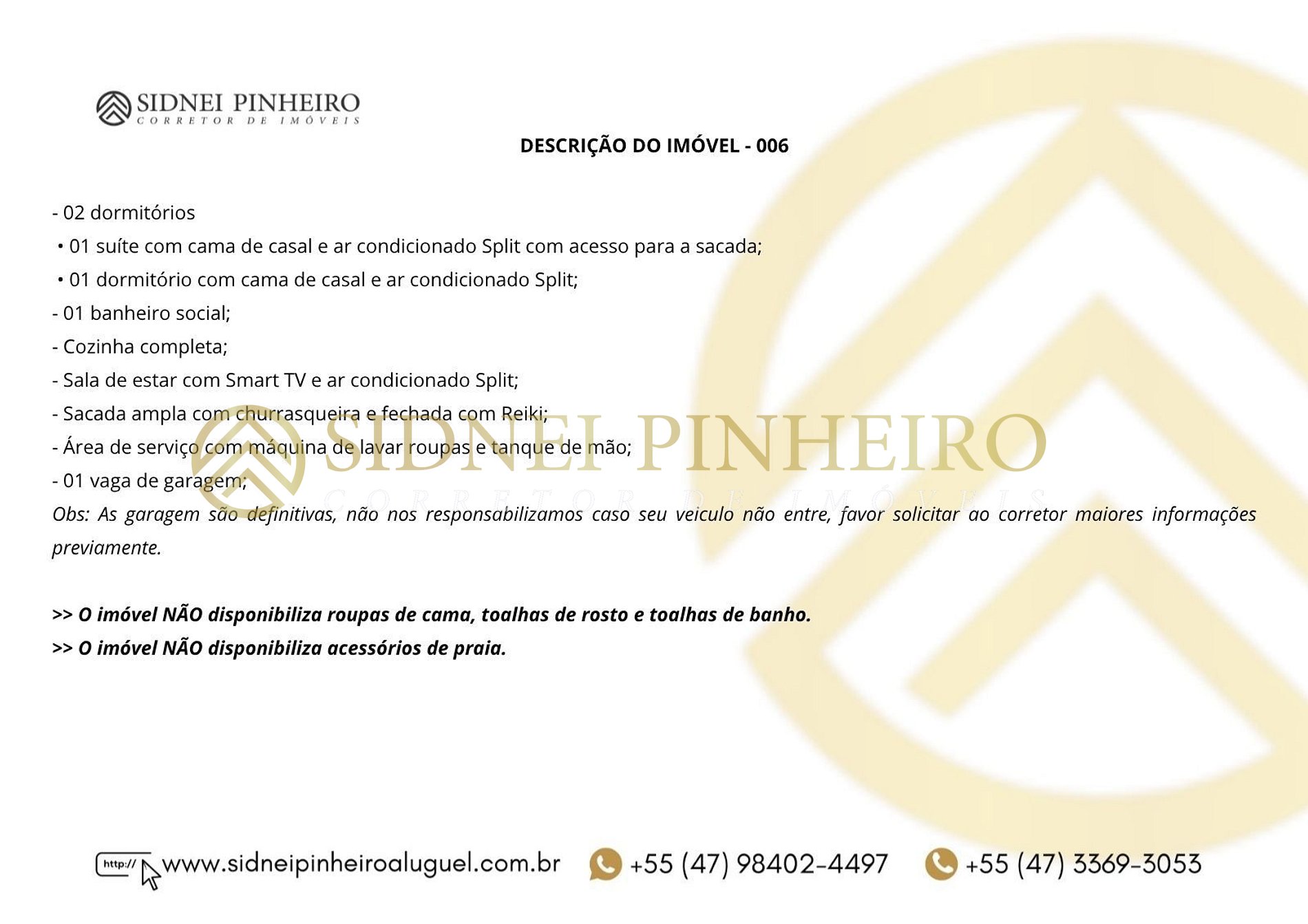 006 - Apartamento de 02 dormitórios na Praia de Bombas