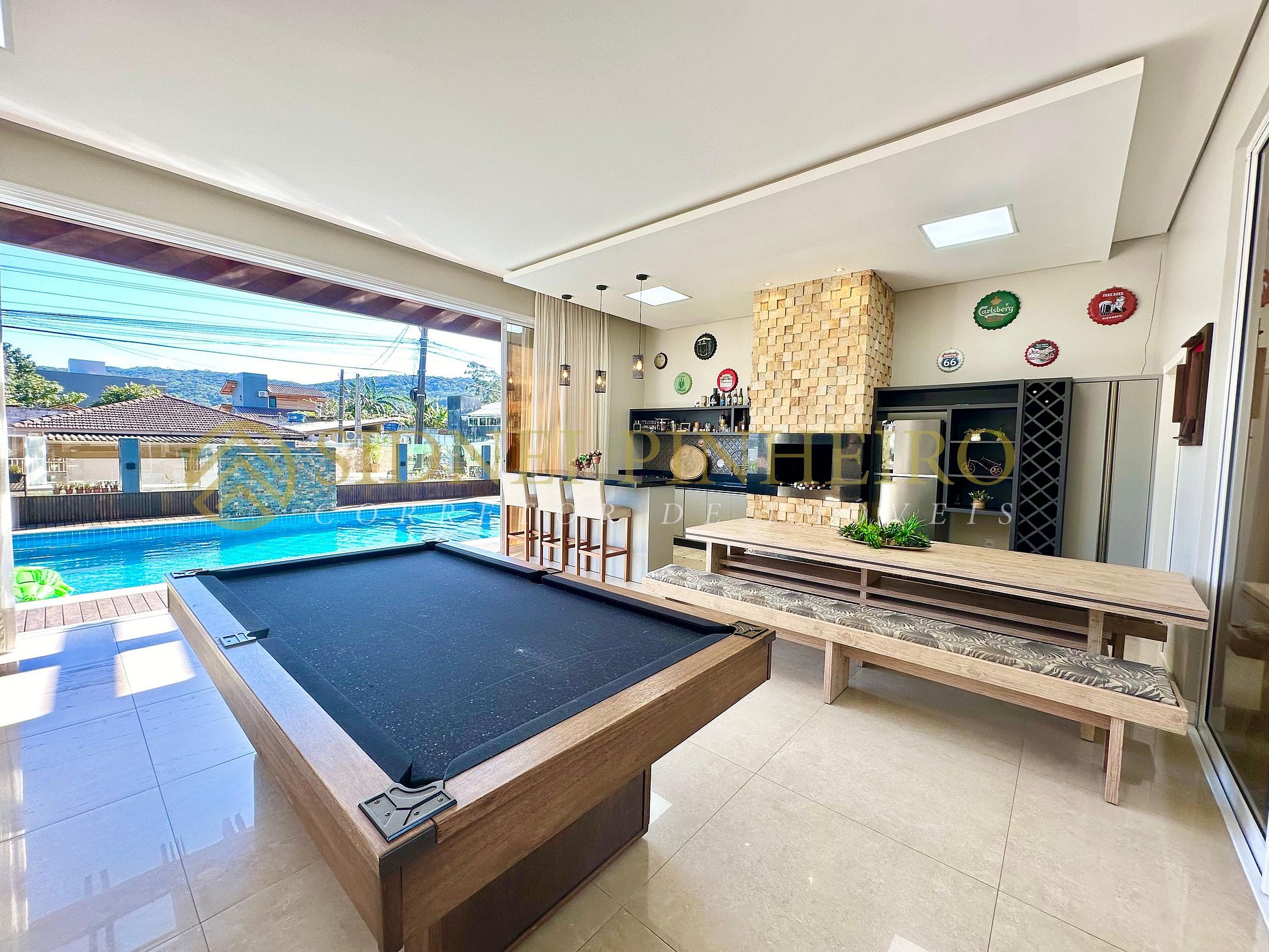- Área gourmet com cozinha, churrasqueira, mesa para 10 pessoas, mesa de sinuca;