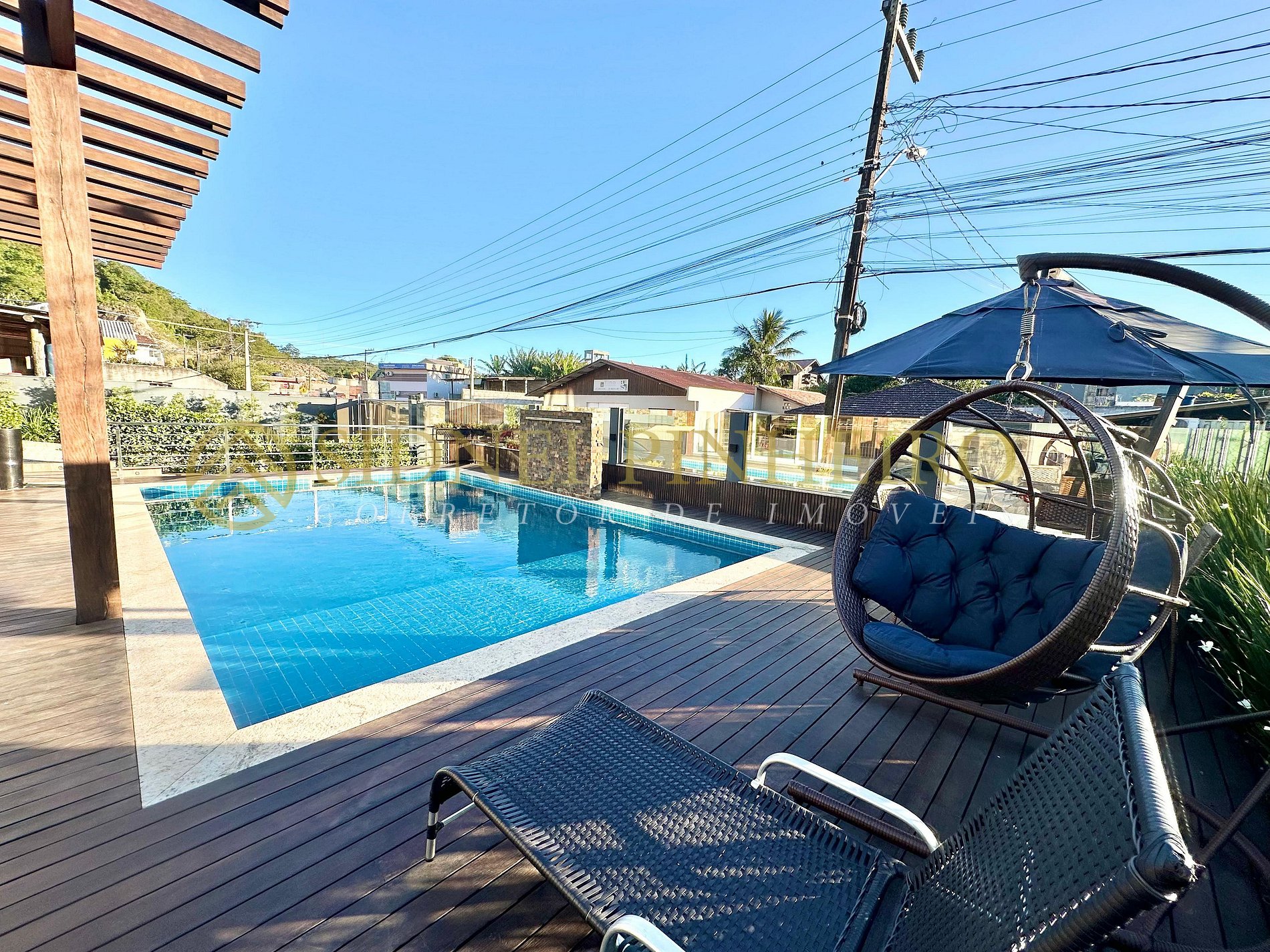 - Piscina privativa com balanço para descanso e espreguiçadeira;