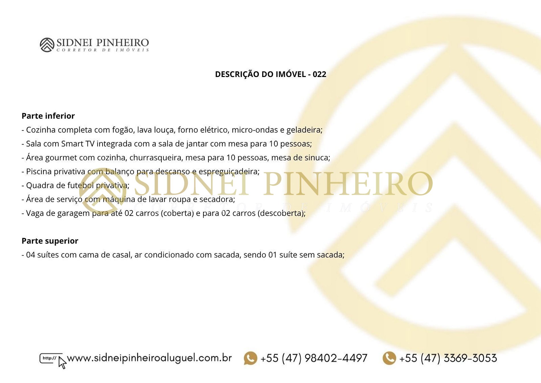 - Proibido fumar no interior do imóvel.