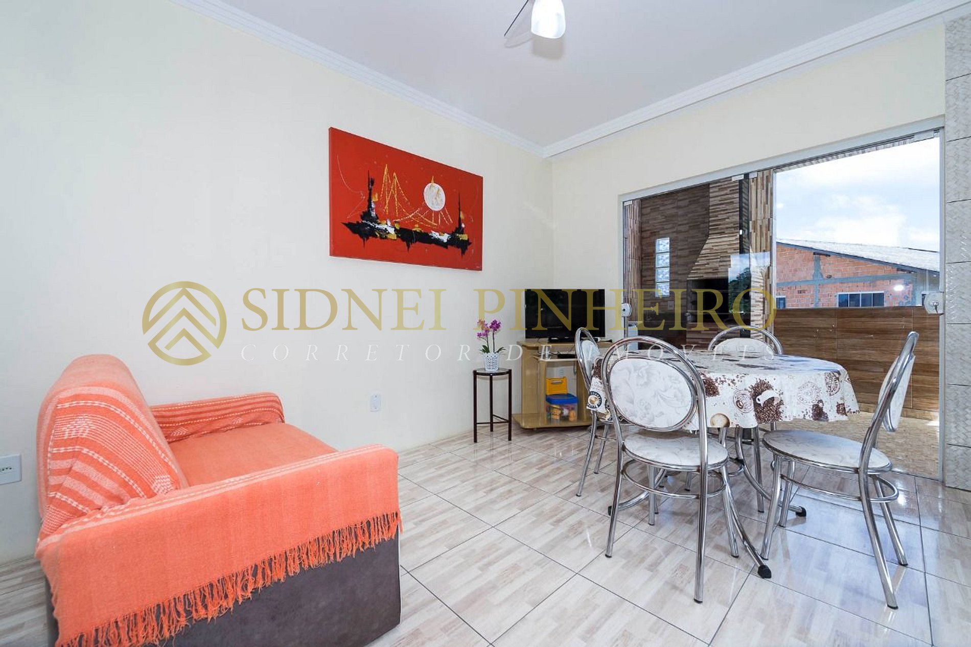> Sala com sofá, TV;