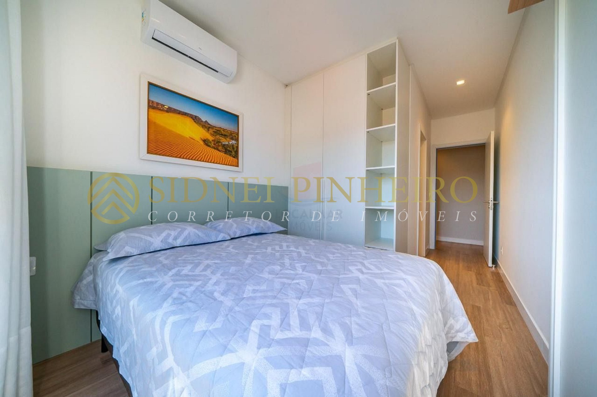 - 01 suíte com cama de casal com ar condicionado split;