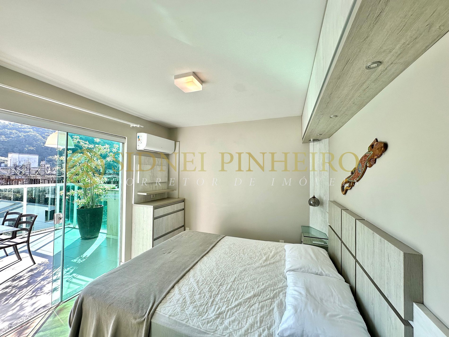 - 01 dormitório com cama de casal, ar condicionado Split e acesso para a sacada com vista para a rua;