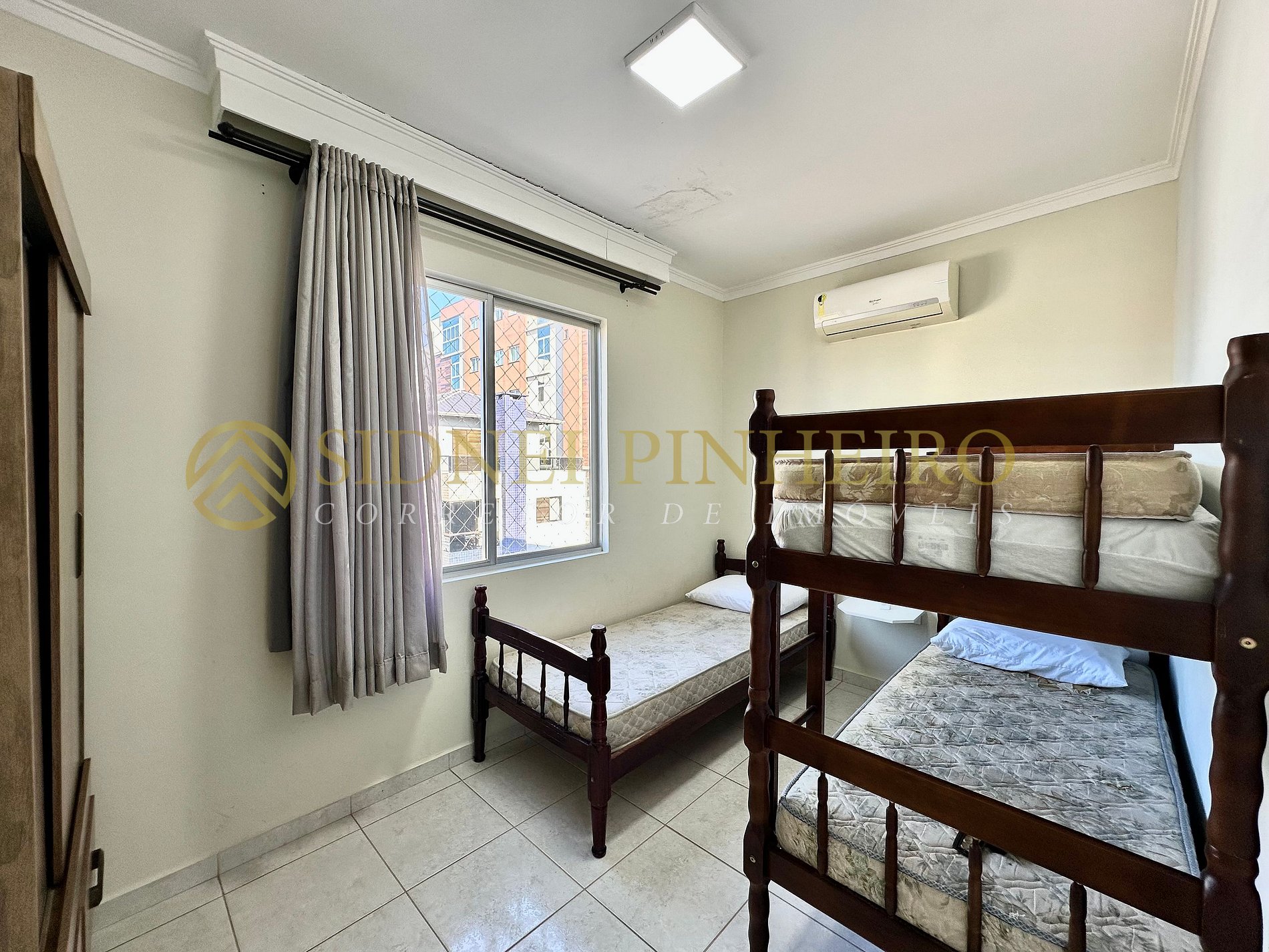 • 01 dormitório com cama de solteiro + beliche e ar condicionado split;